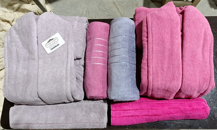 سرویس حوله تن پوش دوقلو عروس داماد مدل تاج جنس رینک پنبه اعلا